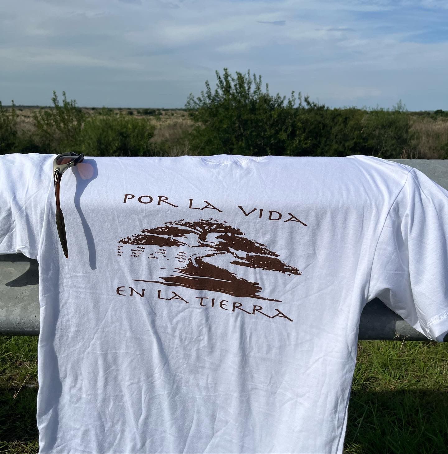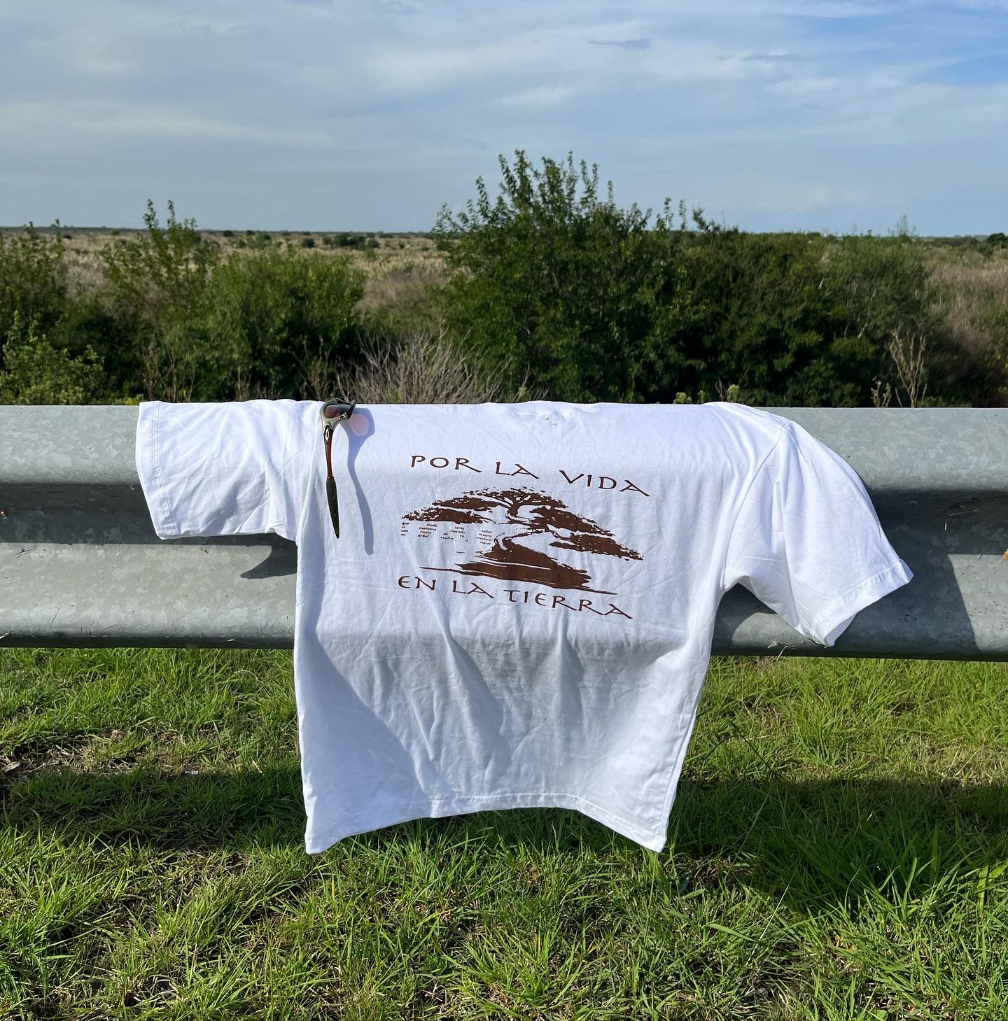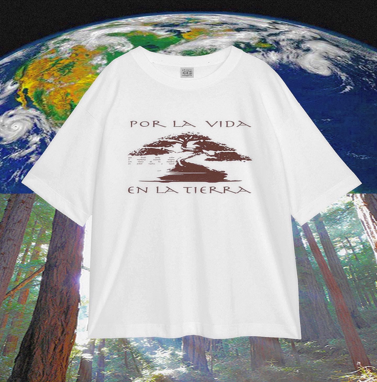 remera «por la vida en la tierra» off white de algodon extra suave liviano 30.1